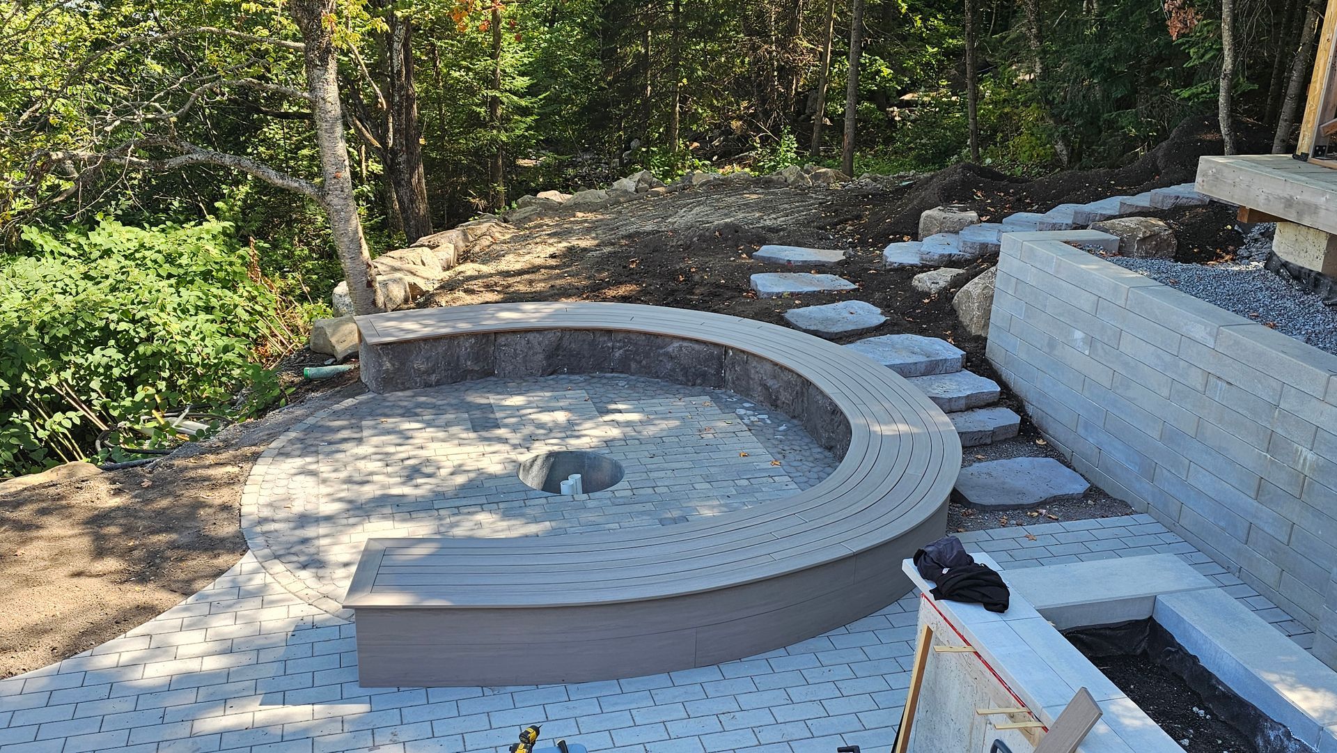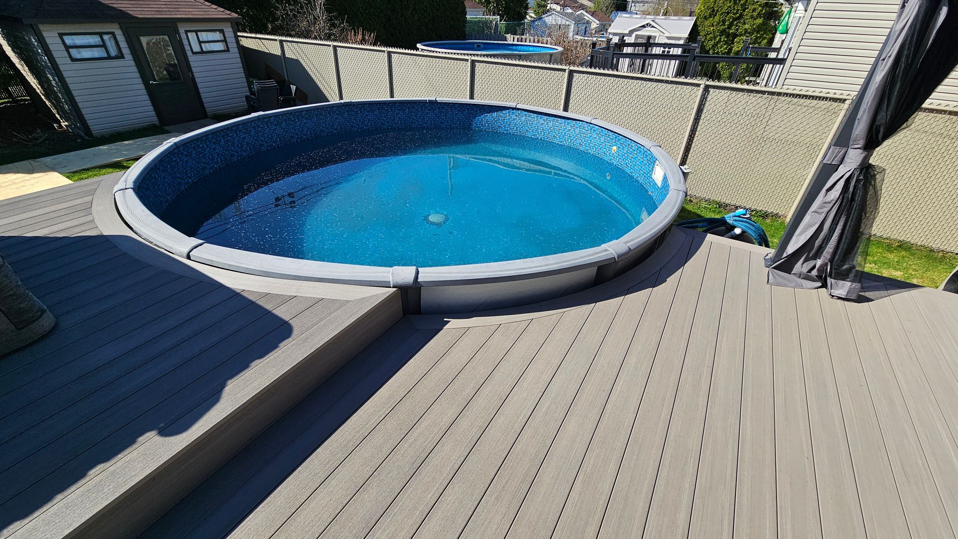 Patio K7 se spécialise dans la fabrication de courbes en PVC Azek TimberTech. Que ce soit pour des banquettes circulaires ou de patio arrondi, notre équipe maîtrise les techniques nécessaires pour obtenir des formes fluides qui s’adaptent à votre espace extérieur.